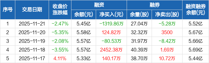杭氧股份:融资净偿还1319.86万元,融资余额5.45亿元(11-21)