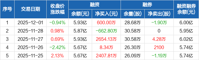 杭氧股份:融资净买入600万元,融资余额5.93亿元(12-01)