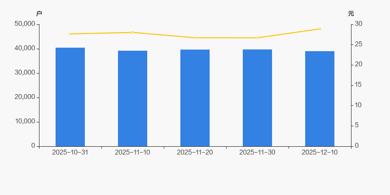 截至2025年12月10日,公司最新流通股本为9.78亿股。户均持有流通股数量由上期的2.46万股上升至2.51万股,户均流通市值72.43万元。