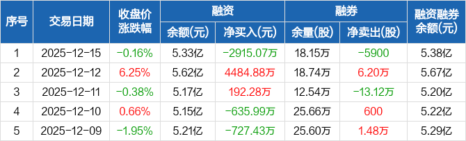 杭氧股份:融资净偿还2915.07万元,融资余额5.33亿元(12-15)