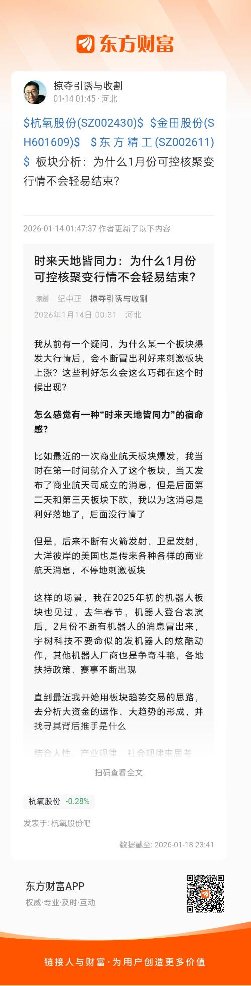 $杭氧股份(SZ002430)$ $金田股份(SH601609)$ $东方精工(SZ002611)$ 板块分析:为什么1月份可控核聚变行情不会轻易结束?