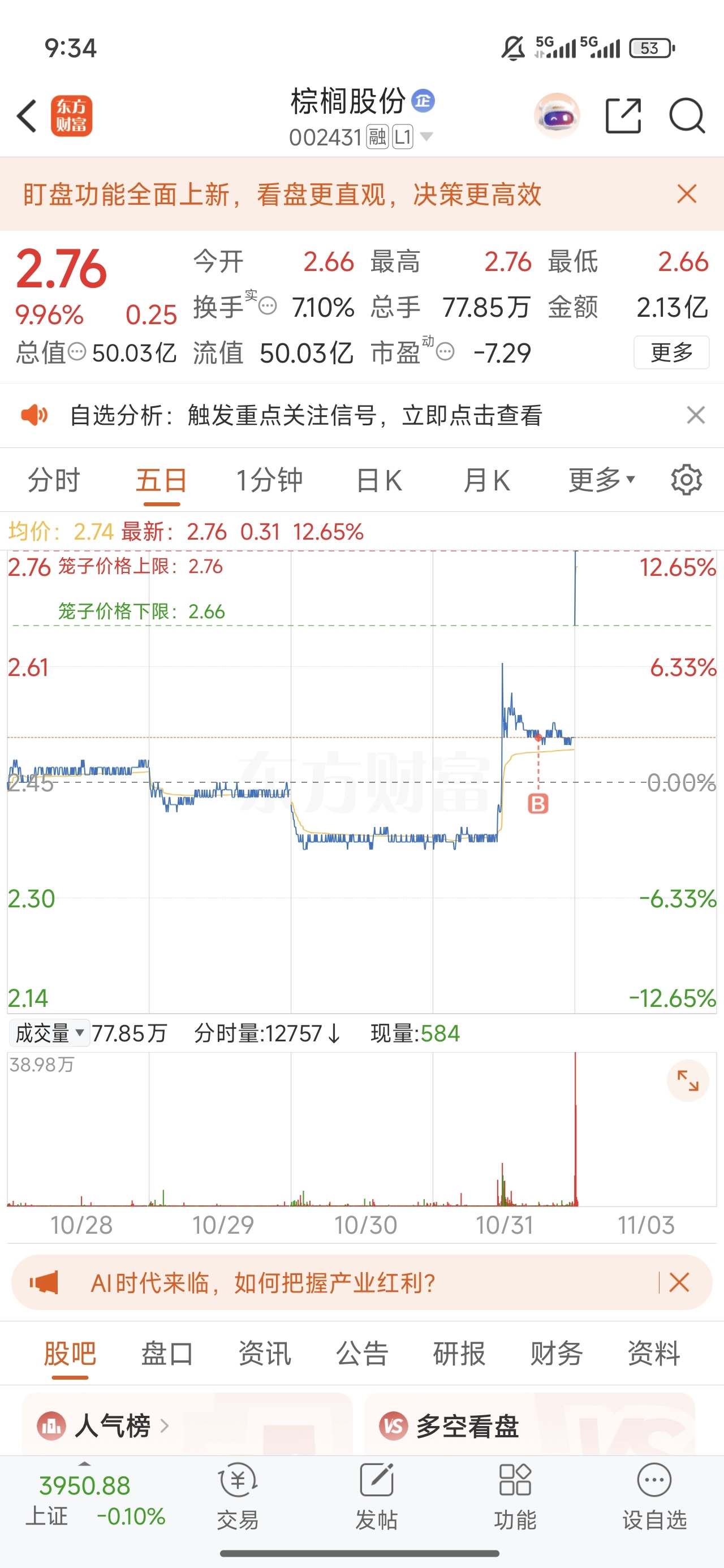 $棕榈股份(SZ002431)$ 少了50万封单了,不会要炸板吧