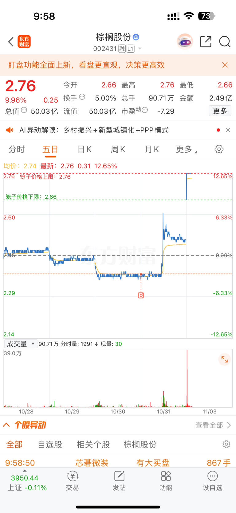 $棕榈股份(SZ002431)$ 哎太谈贪没卖好