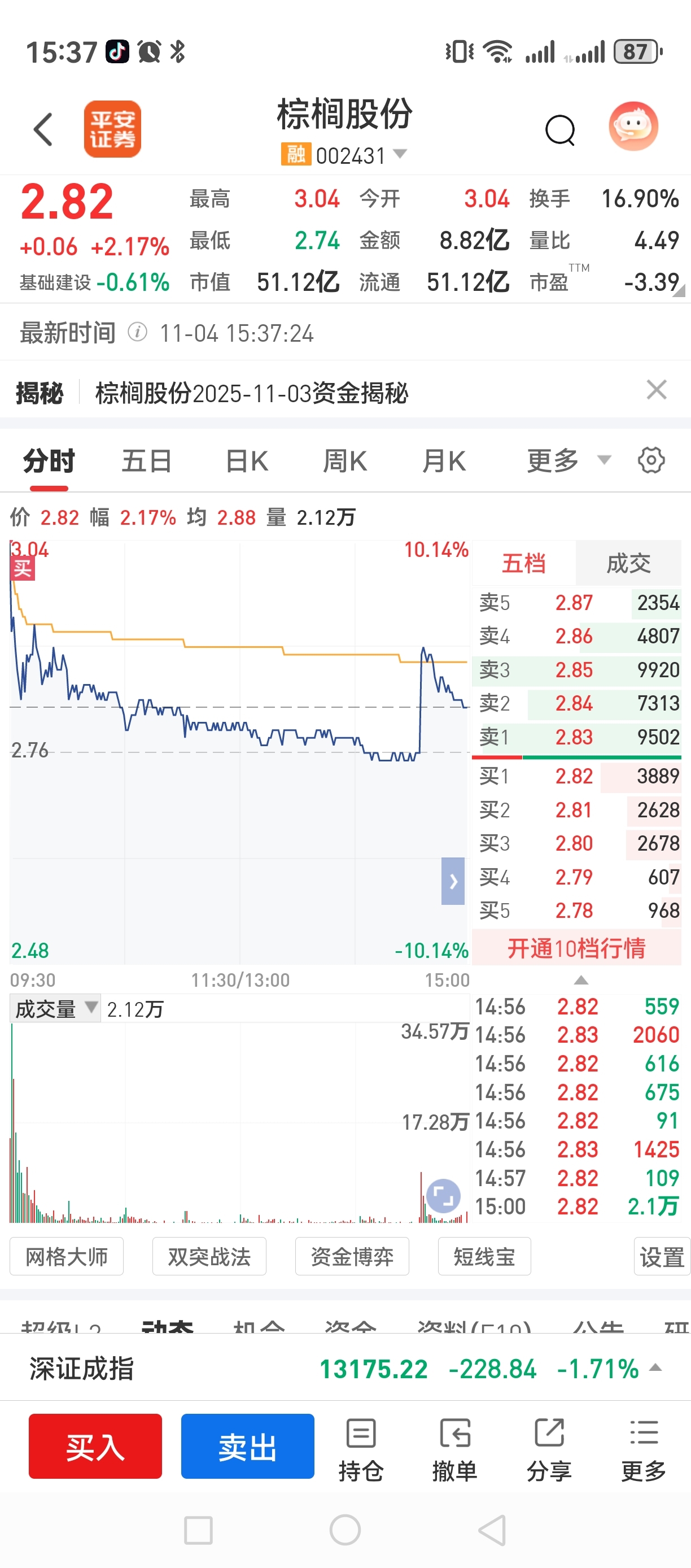$棕榈股份(SZ002431)$ 打板进的,亏惨了