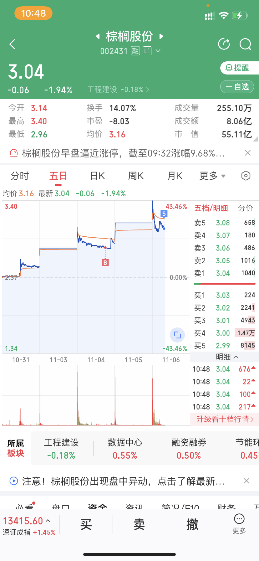 $棕榈股份(SZ002431)$ 很伤心。痛苦不堪。9个多点没卖,现在成这个鸟样