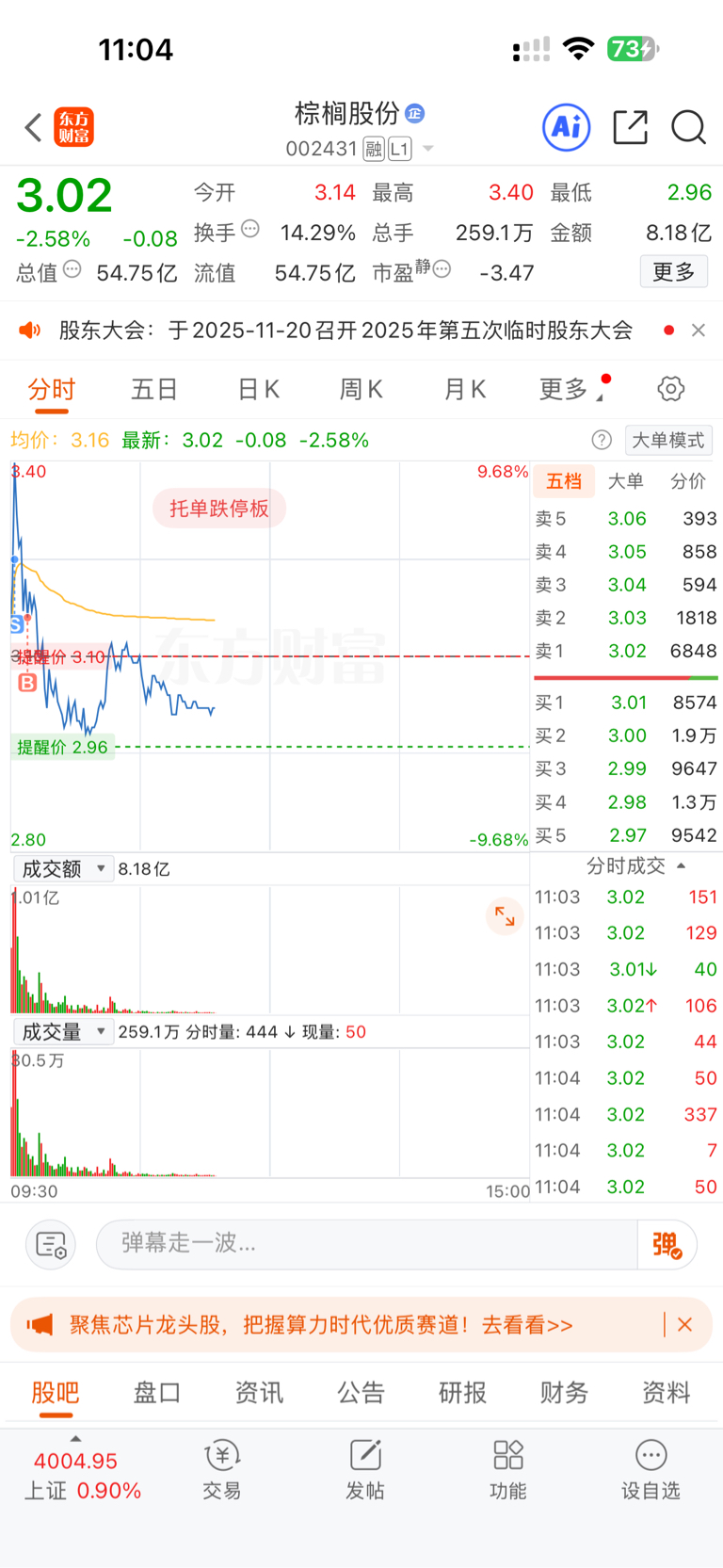 $棕榈股份(SZ002431)$ 卖也不会卖也不会