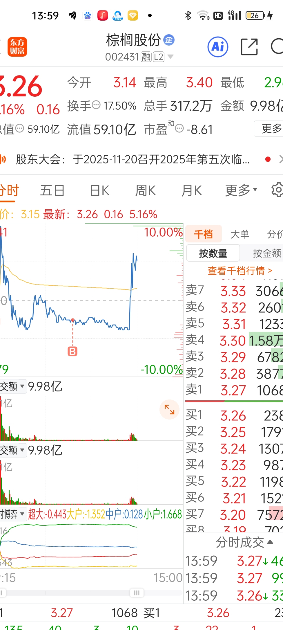 $棕榈股份(SZ002431)$ 胆小的朋友可以T出底仓