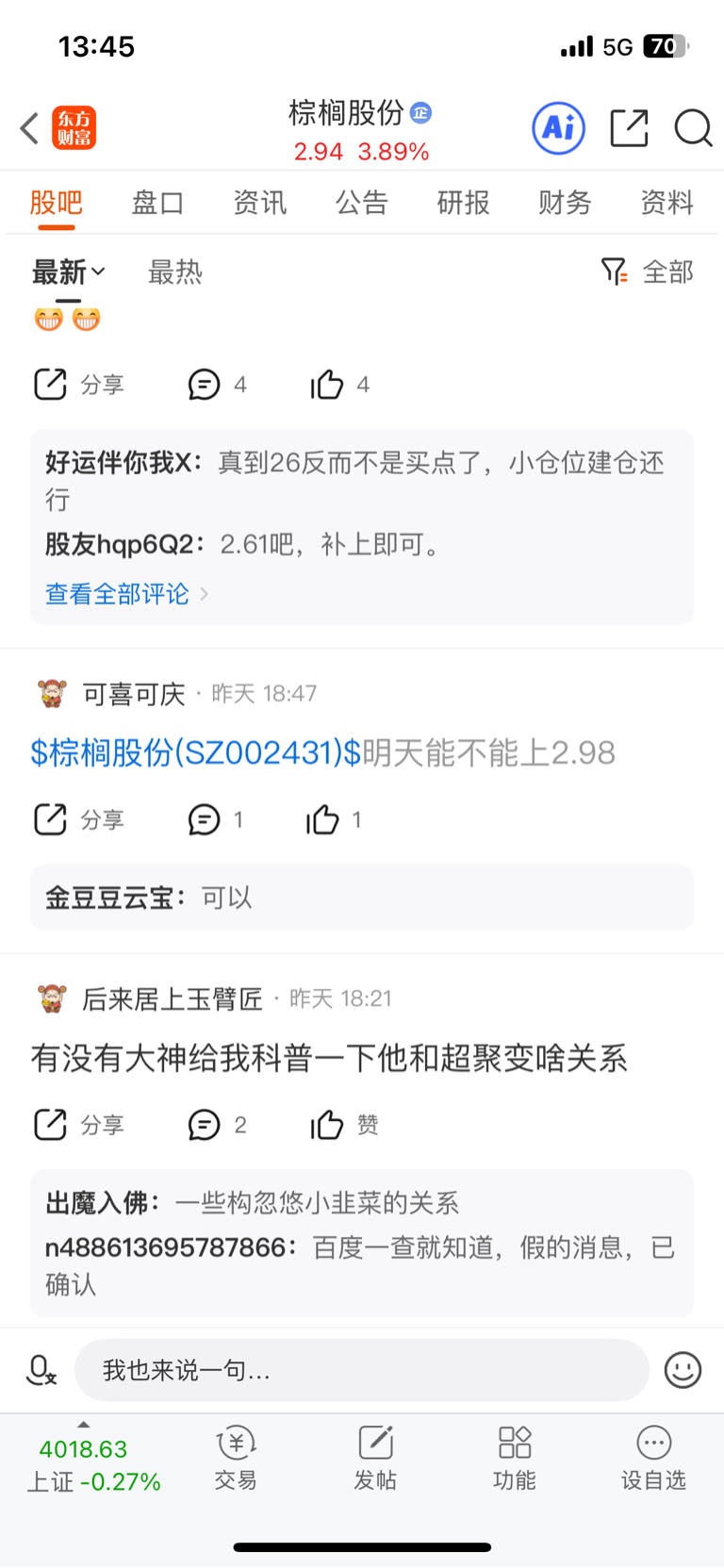 温馨提示: 1.根据《证券法》规定,禁止编造、传播虚假信息或者误导性信息,扰乱证券市场;2.用户在本社区发表的所有资料、言论等仅代表个人观点,与本网站立场无关,不对您构成任何投资建议。用户应基于自己的独立判断,自行决定证券投资并承担相应风险。《东方财富社区管理规定》