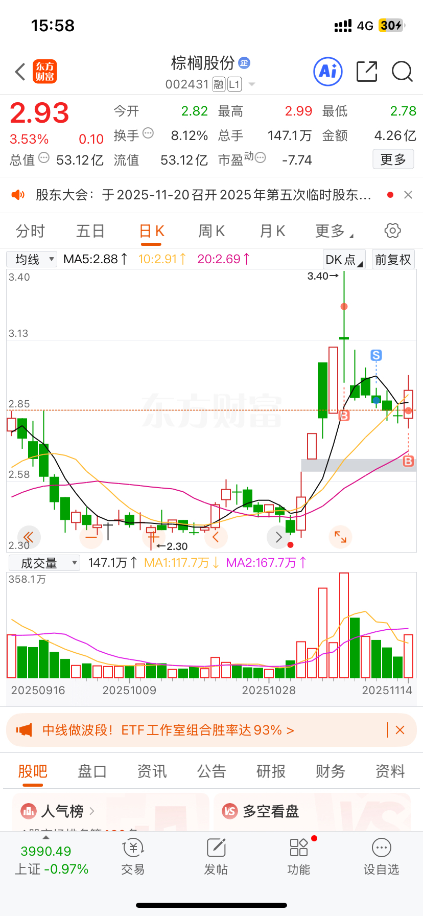 $棕榈股份(SZ002431)$ 回本路漫漫啊