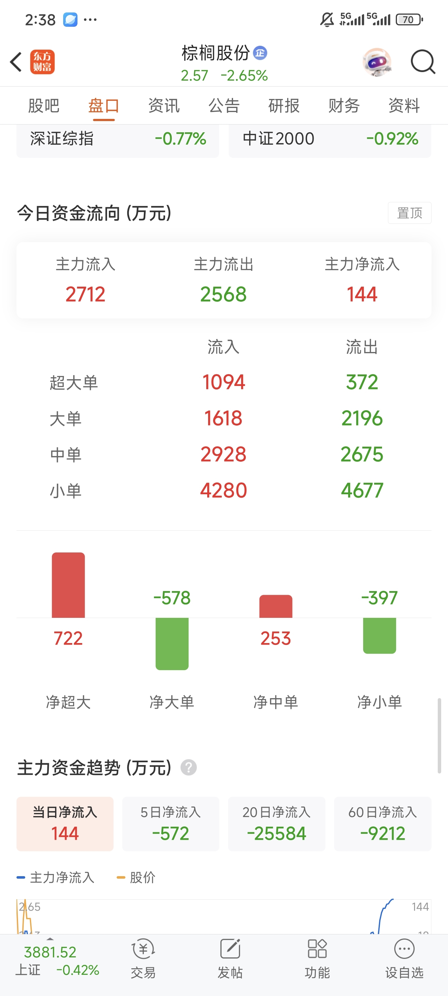 $棕榈股份(SZ002431)$  主力流入?