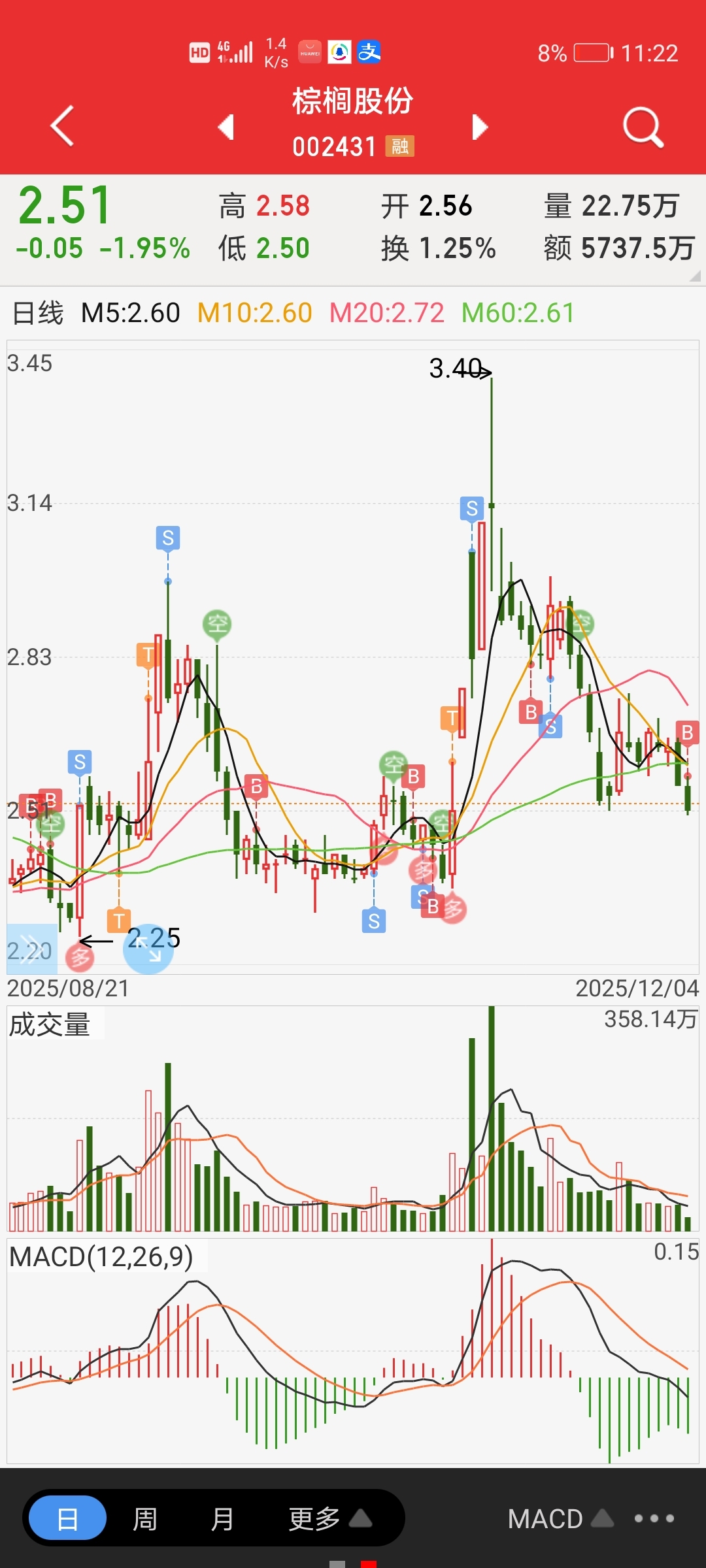 $棕榈股份(SZ002431)$ 兄弟们,我又回来了,底仓搞起,在外面兜兜转转十几天,账户回撤十几个点,只能在这里搞回来了,立帖为证,在这里账户不创新高不走