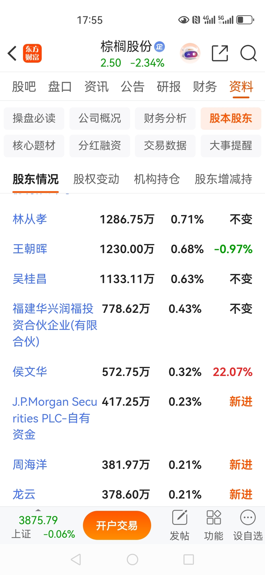 $棕榈股份(SZ002431)$ 摩根在里面,一起玩。