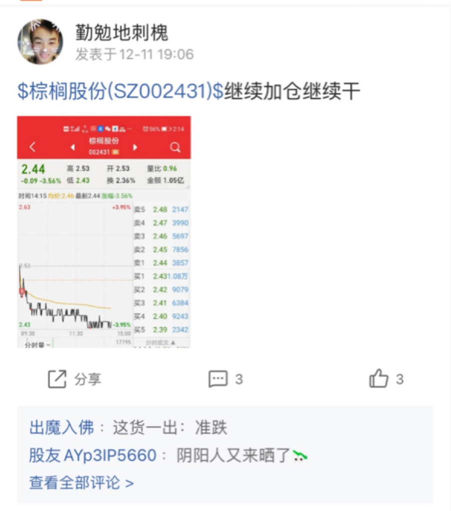 $棕榈股份(SZ002431)$ 呼叫阴阳人,今天继续抽地吗,我跟