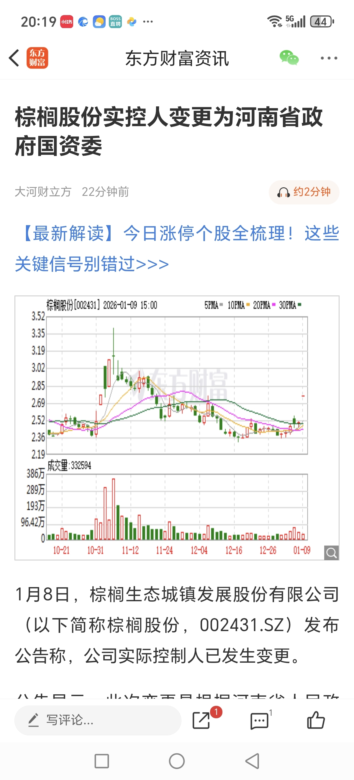 $棕榈股份(SZ002431)$ 借壳来了,和超聚变一个股东了