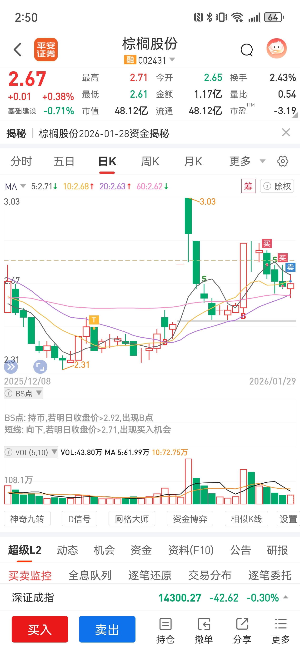 $棕榈股份(SZ002431)$ 再也不见,一个星期没一天红。