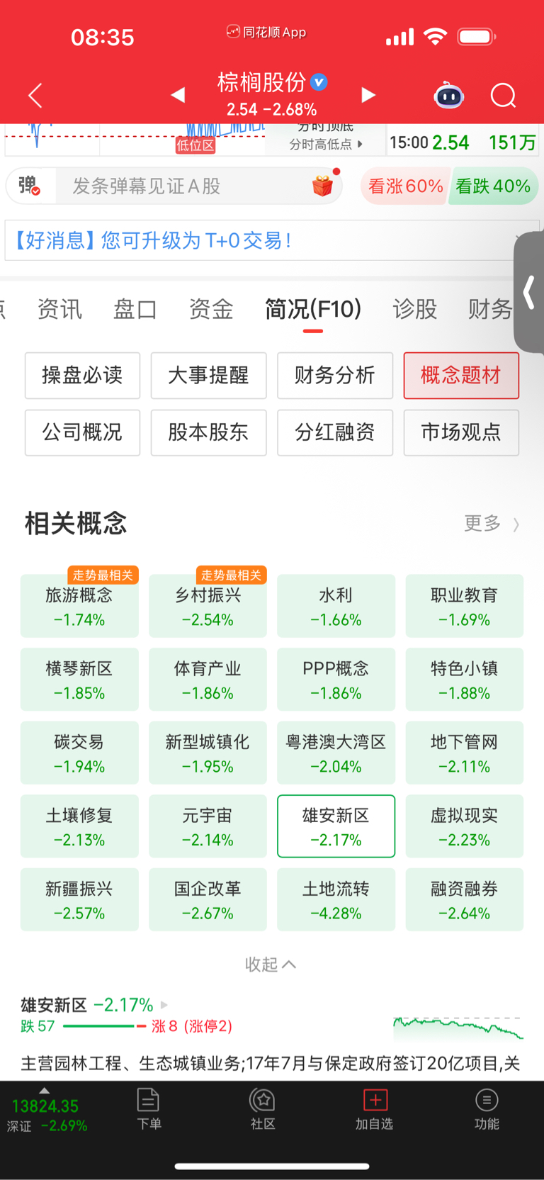 $棕榈股份(SZ002431)$ 今天有溢价吗