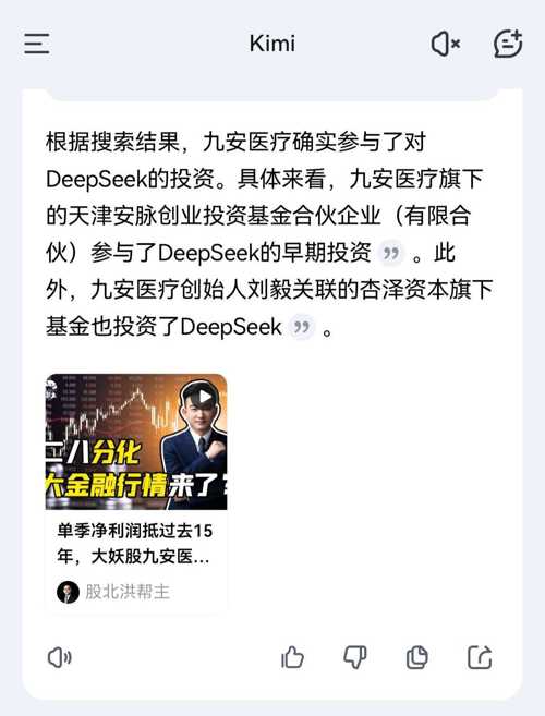 $九安医疗(SZ002432)$ 问了智谱清言、kimi、deepseek等关于九安医疗有没有投资deepseek的问题,结论如下