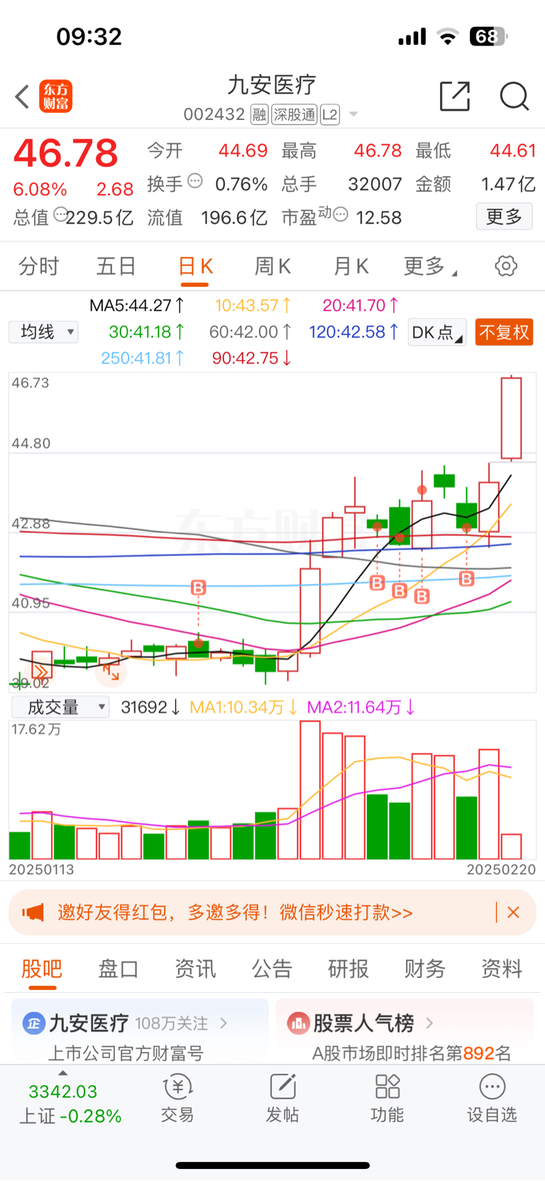 $九安医疗(SZ002432)$ 如果今天涨停,你们爱怎么唱对我都没意见