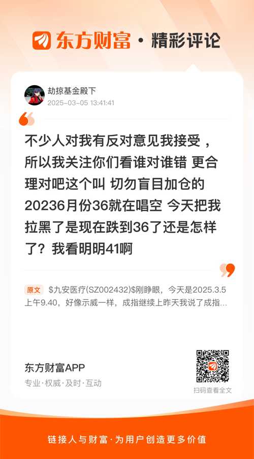 温馨提示: 1.根据《证券法》规定,禁止编造、传播虚假信息或者误导性信息,扰乱证券市场;2.用户在本社区发表的所有资料、言论等仅代表个人观点,与本网站立场无关,不对您构成任何投资建议。用户应基于自己的独立判断,自行决定证券投资并承担相应风险。《东方财富社区管理规定》