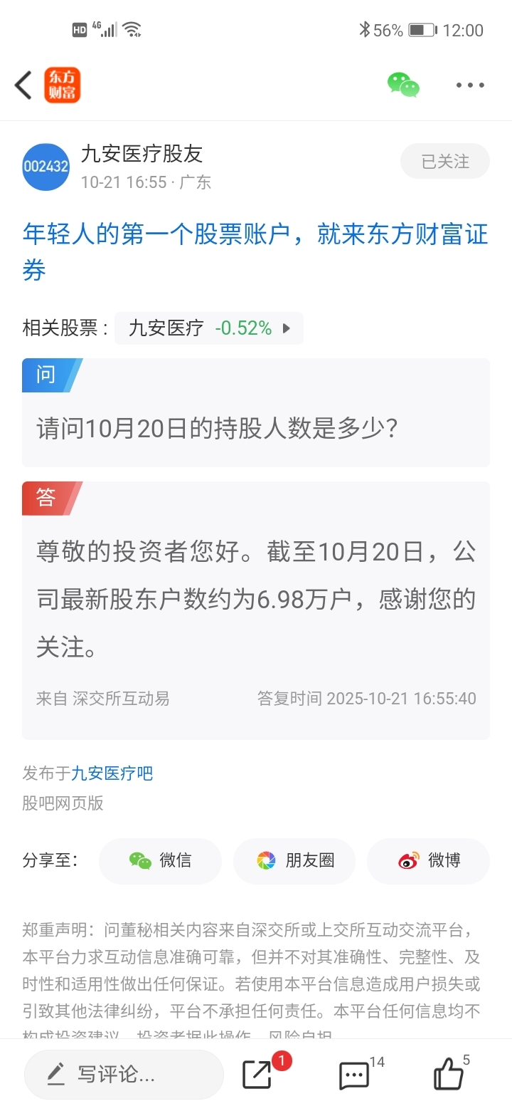 $九安医疗(SZ002432)$ 股东户数仍在减少。看来是都不看好啊
