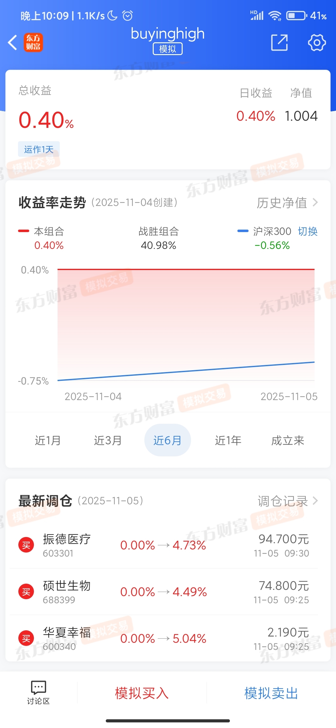 $九安医疗(SZ002432)$ 昨天花了一分钟,买了些真实生活中不敢买的模拟仓,今天这就挣钱了。