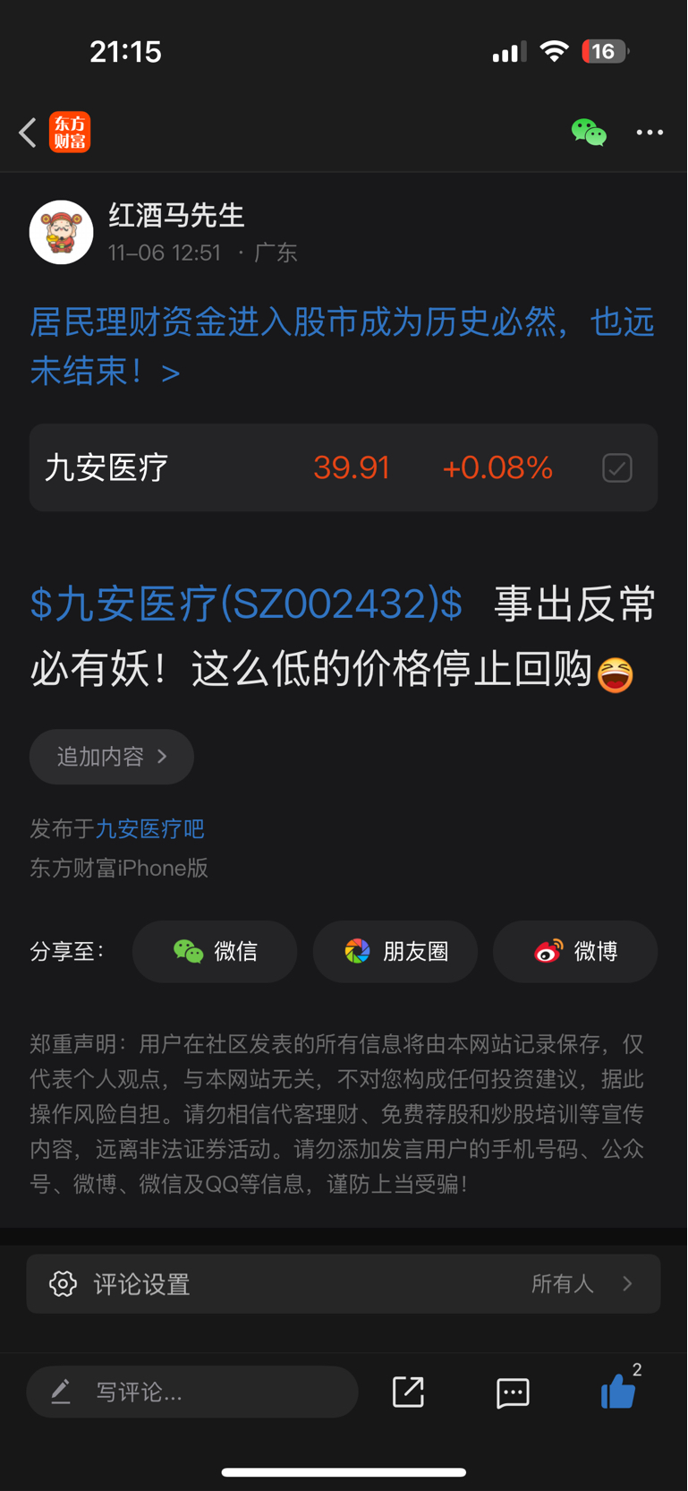 $九安医疗(SZ002432)$ 究竟什么原因,停止回购?