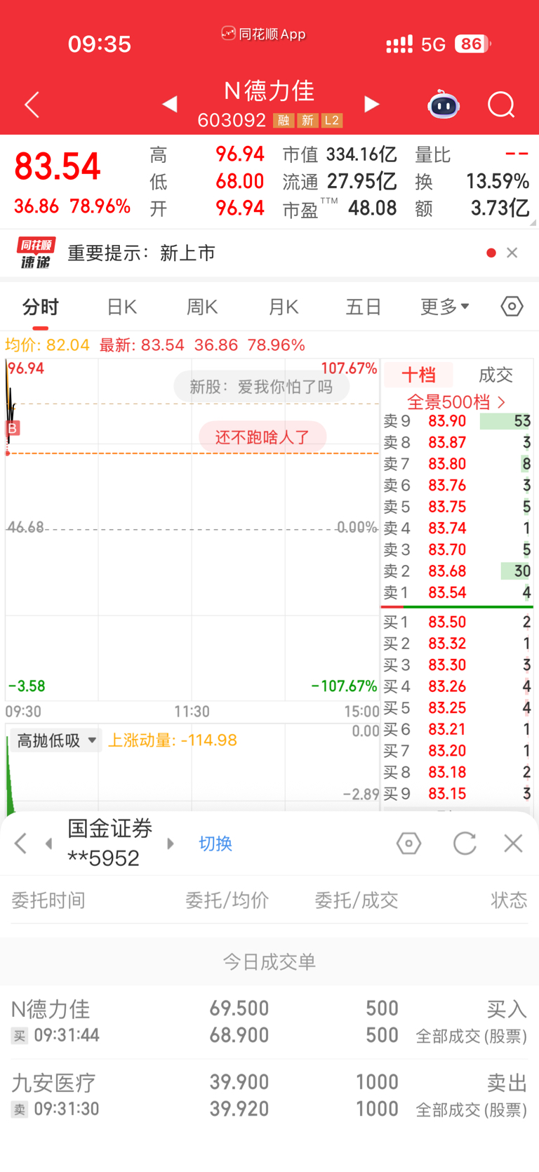 $九安医疗(SZ002432)$ 卖了点九安 买了新股打打野吧 实在受不了了这个墨迹劲儿