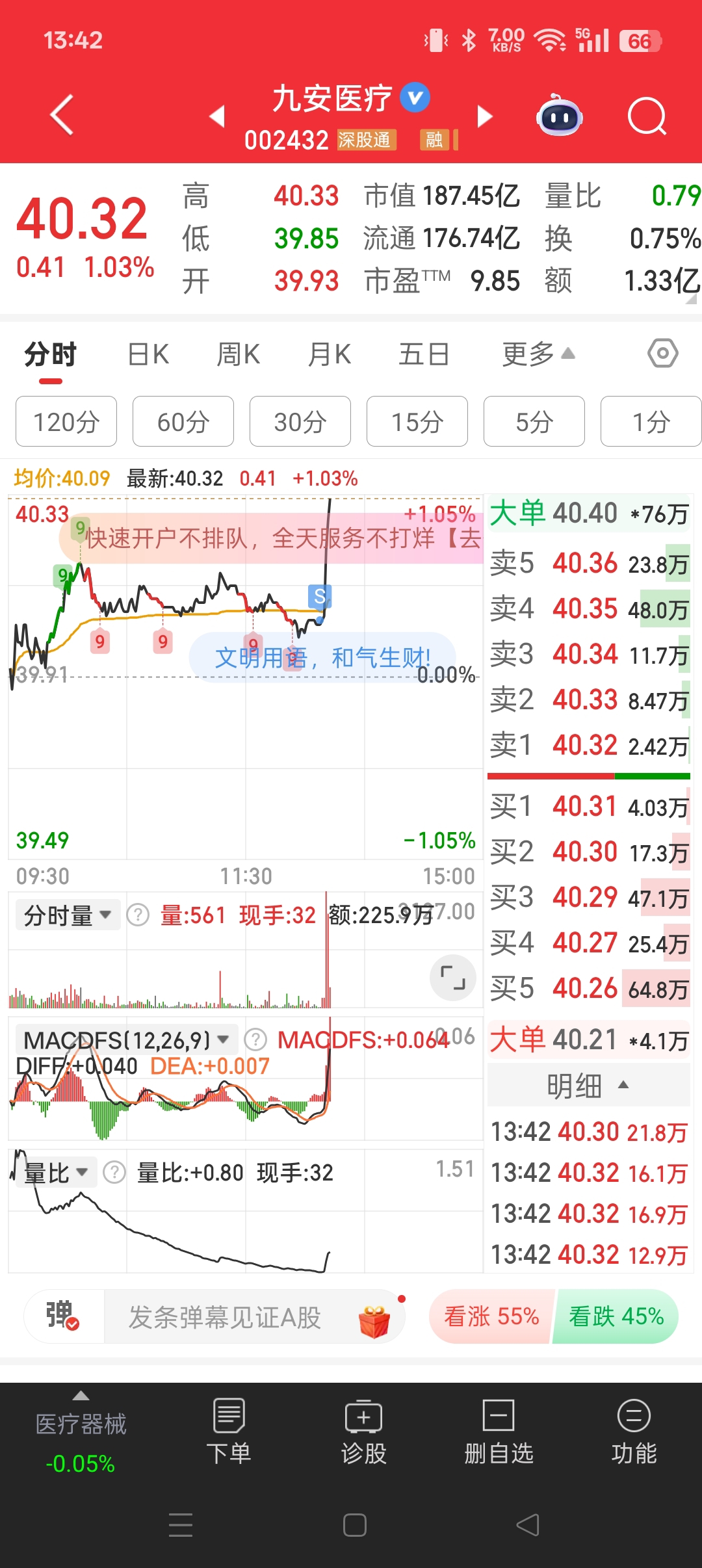 $九安医疗(SZ002432)$ 被主力盯上了,哈哈