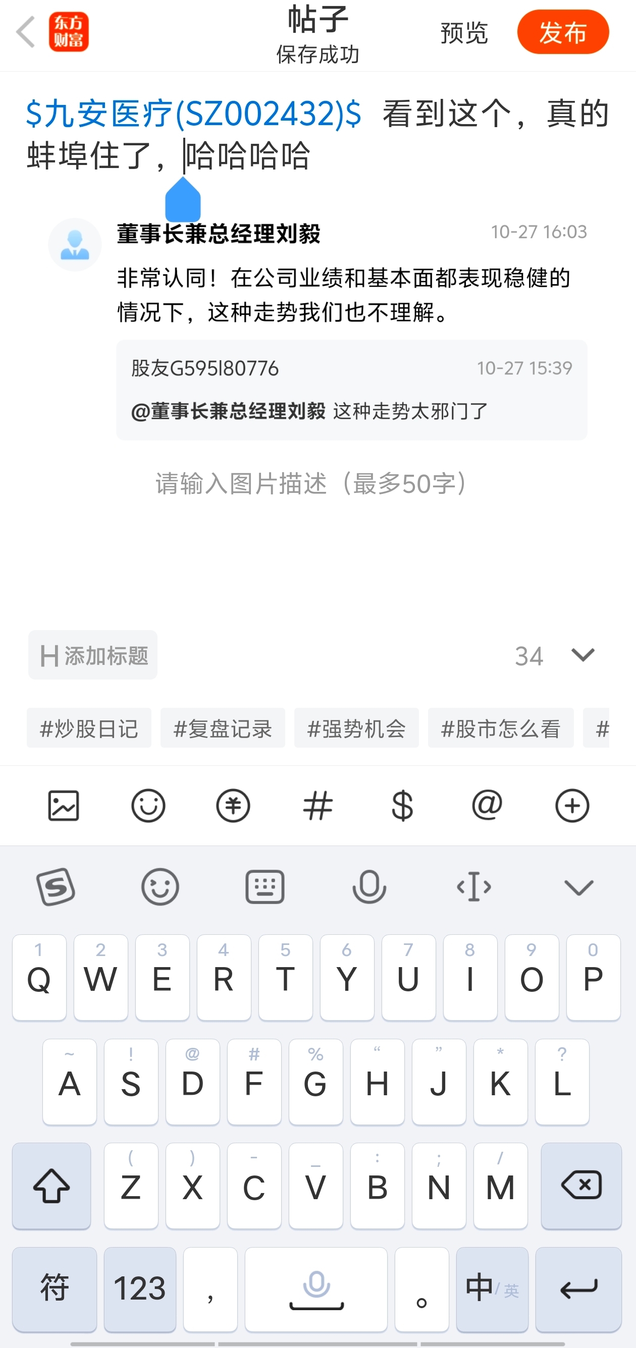 $九安医疗(SZ002432)$ 能别删了不,已经第三次了,再删我要生气了,头给你敲烂