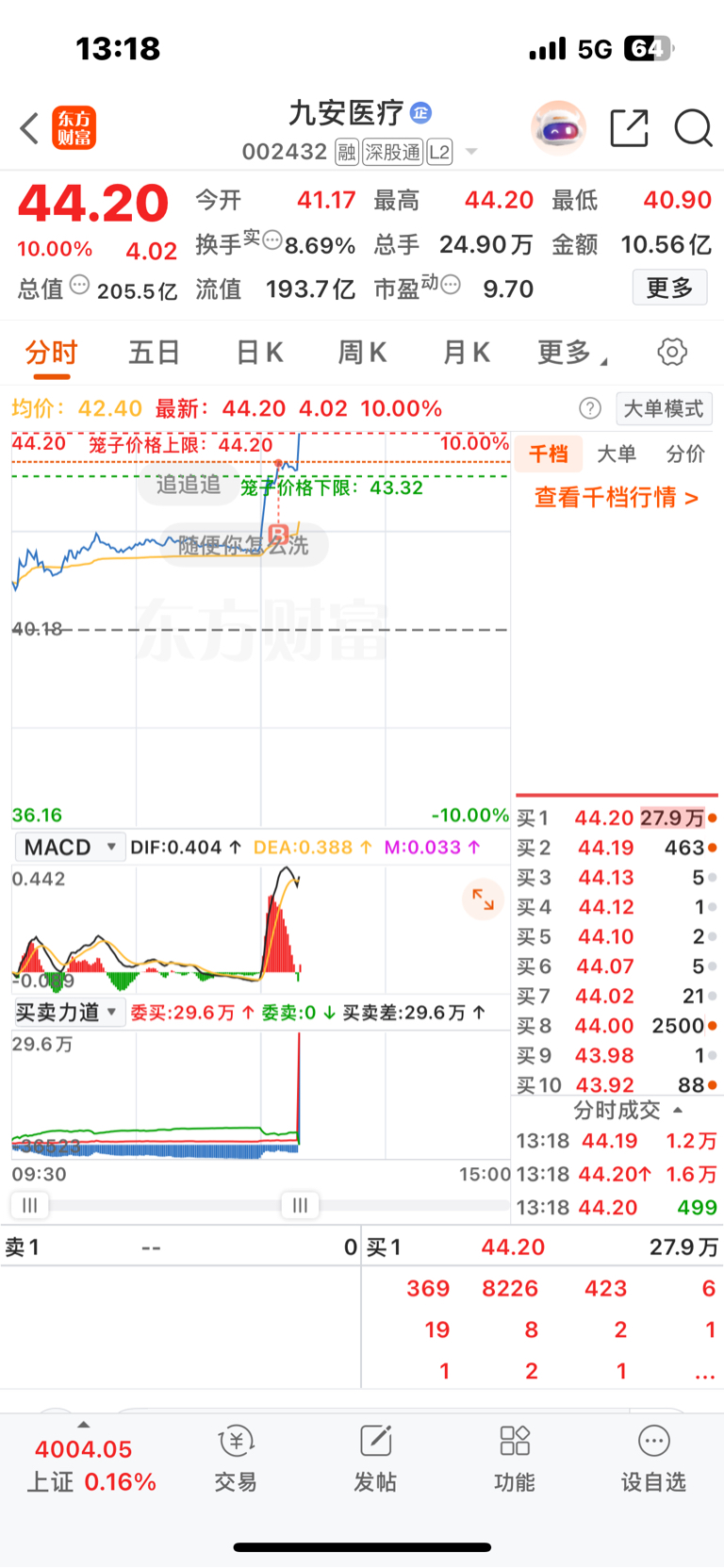 $九安医疗(SZ002432)$ 看下午异动就上车了