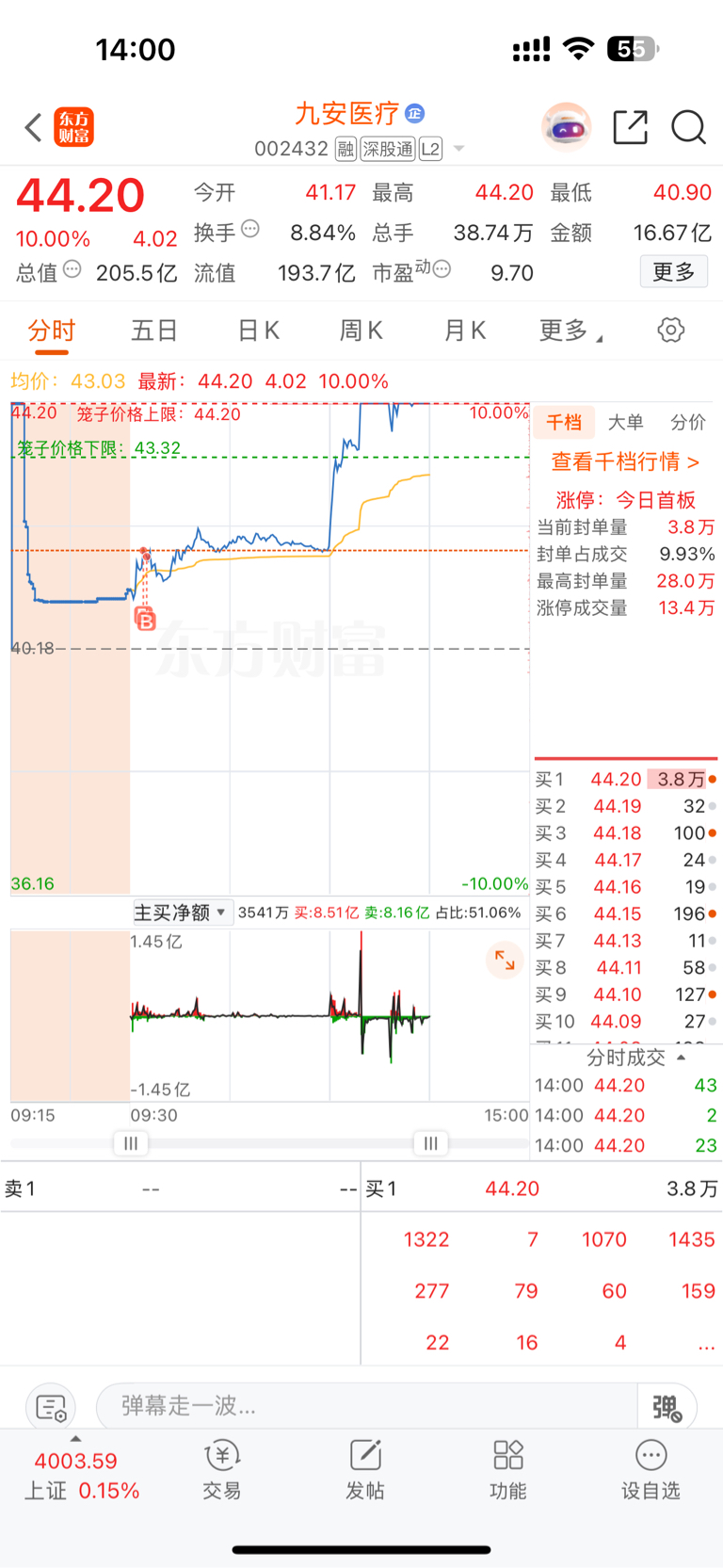 $九安医疗(SZ002432)$ 上午买了你后悔的一批,下午一看涨停了