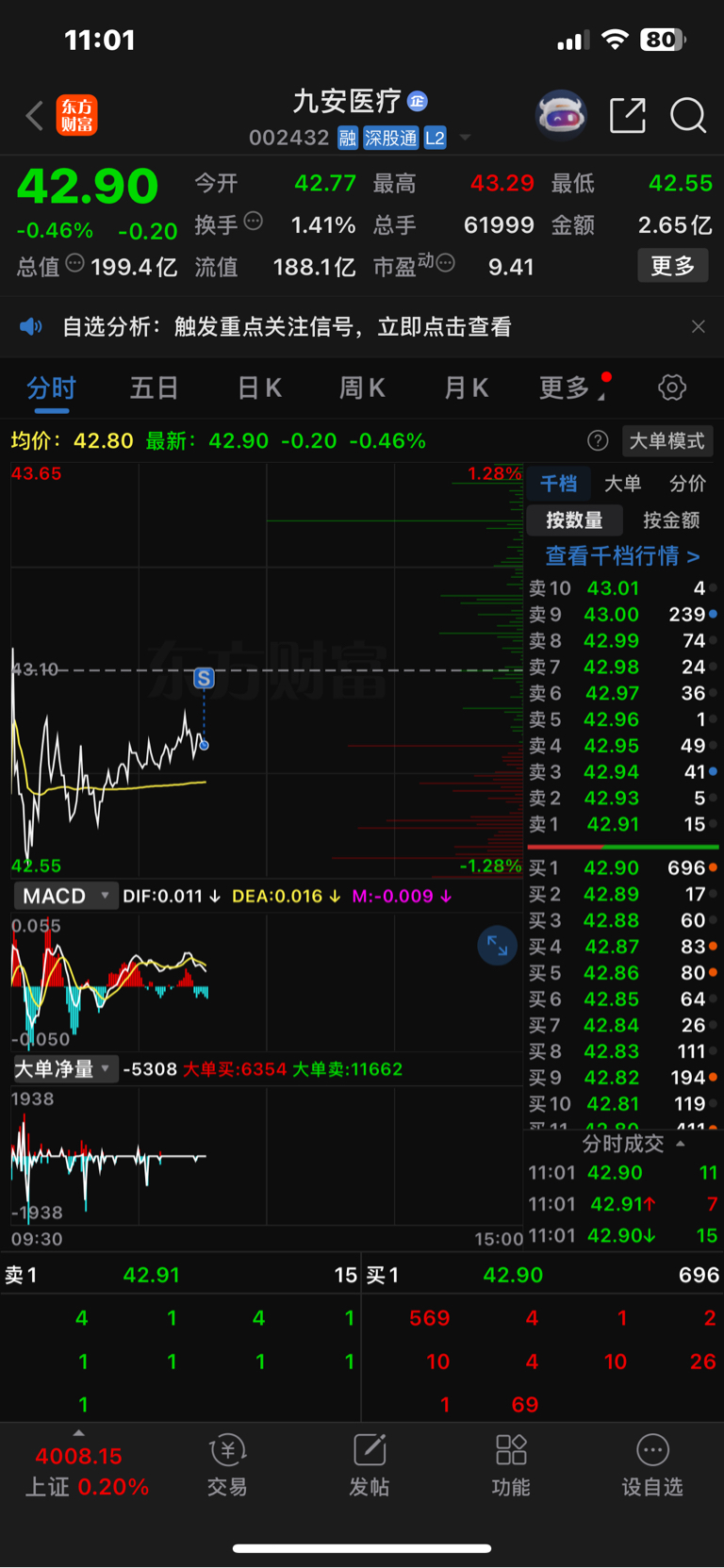 $九安医疗(SZ002432)$ 卖出,今日大盘反攻,医药不可能有表现