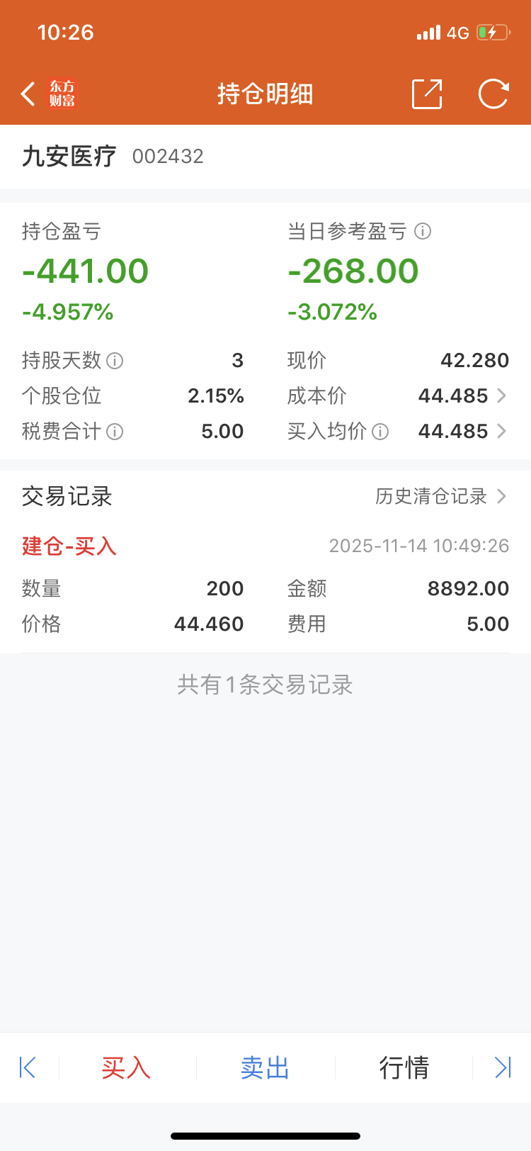 $九安医疗(SZ002432)$ 追高悔一生,下午不反弹就割肉,亏5个点认了