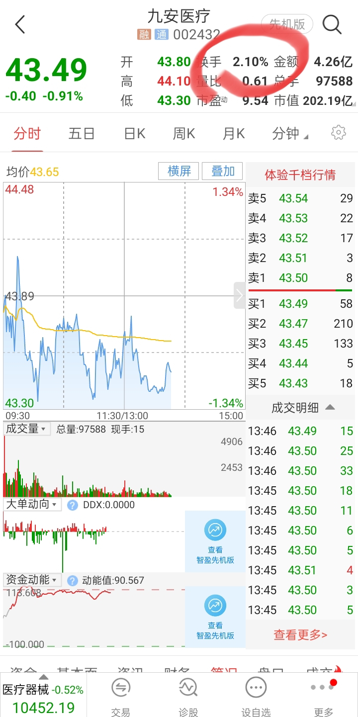 今日九安医疗收盘展望,换手率2.50%一2.8%,死盘。