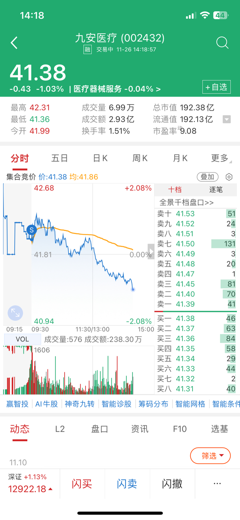 $九安医疗(SZ002432)$ 垃圾,还好跑的快