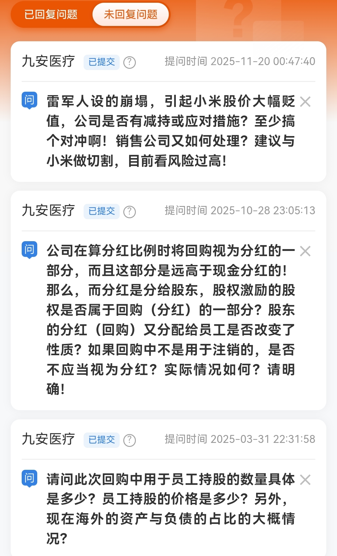 $九安医疗(SZ002432)$ 为什么不回复?