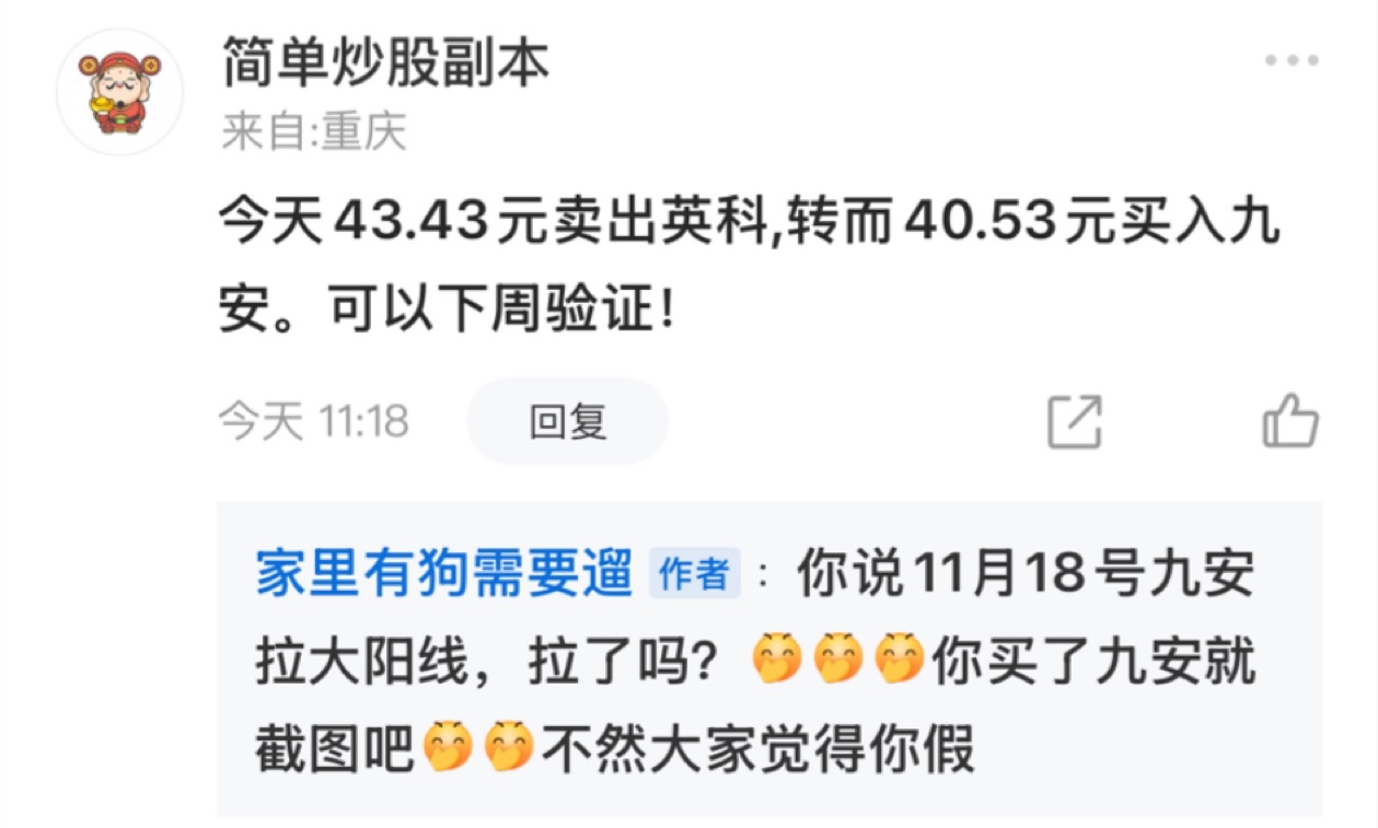 原来我们简主任每天都在左右脑互博啊,每天说九安要拉大阳,唱衰英科!结果今天又说九