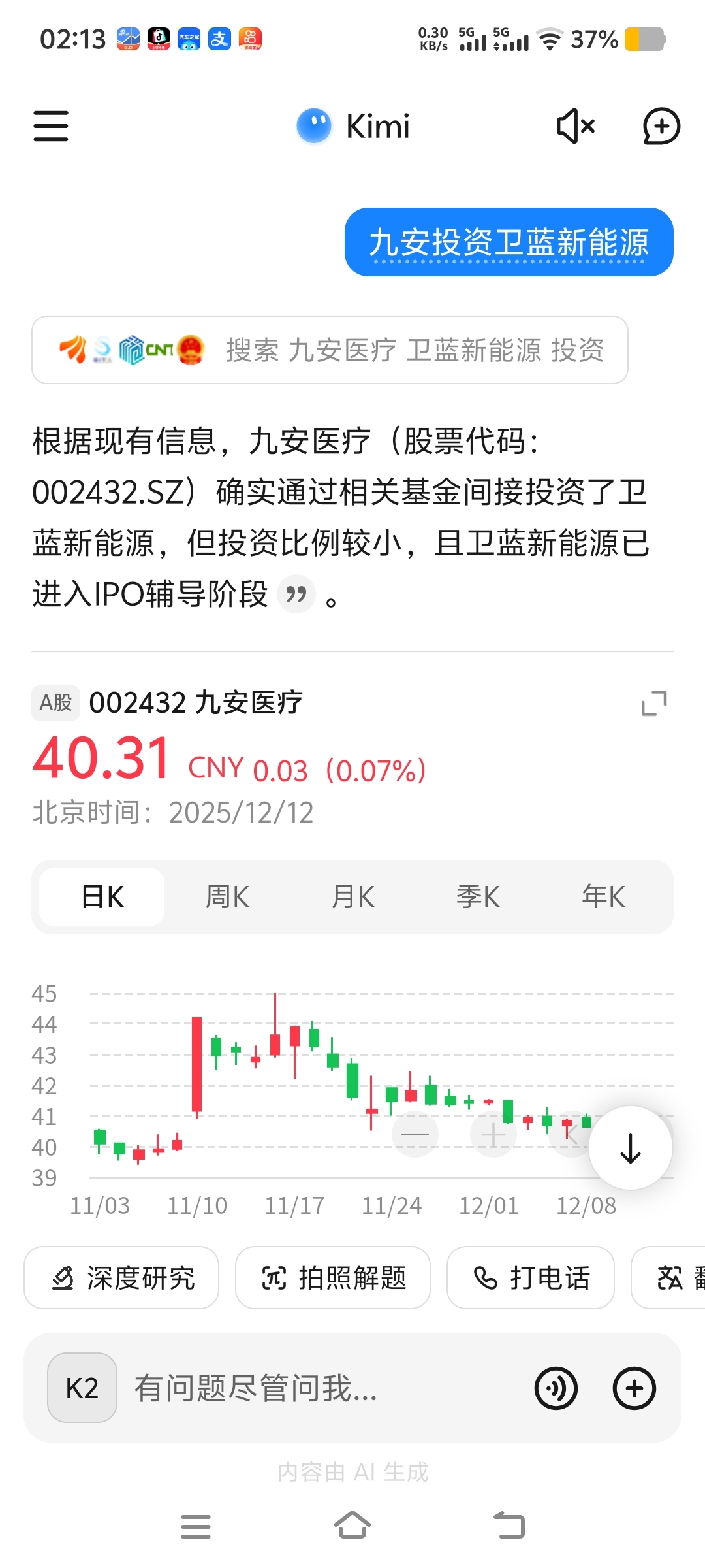 $九安医疗(SZ002432)$ 九安投资卫蓝新能源