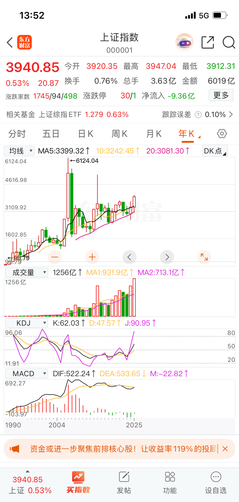 $九安医疗(SZ002432)$ 大盘25年上涨17.58%