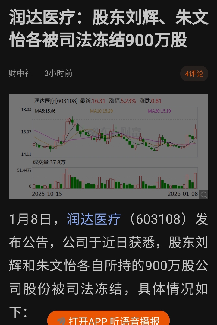刘辉与朱文怡为一致行动人,截至公告披露日,他们累计被冻结/标记股份情况如下: