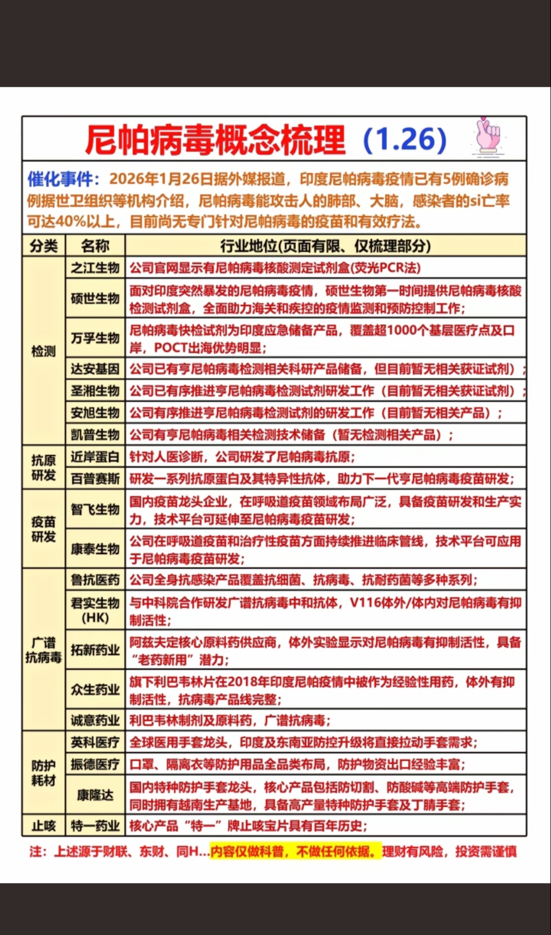 怪不得九安没有涨,尼帕病毒概念里没有九安: