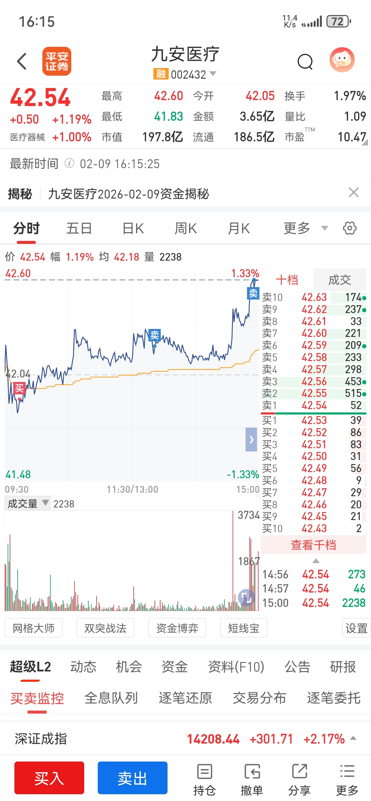 $九安医疗(SZ002432)$ 连涨5天,有点怕了。明天最后一T,希望低开。