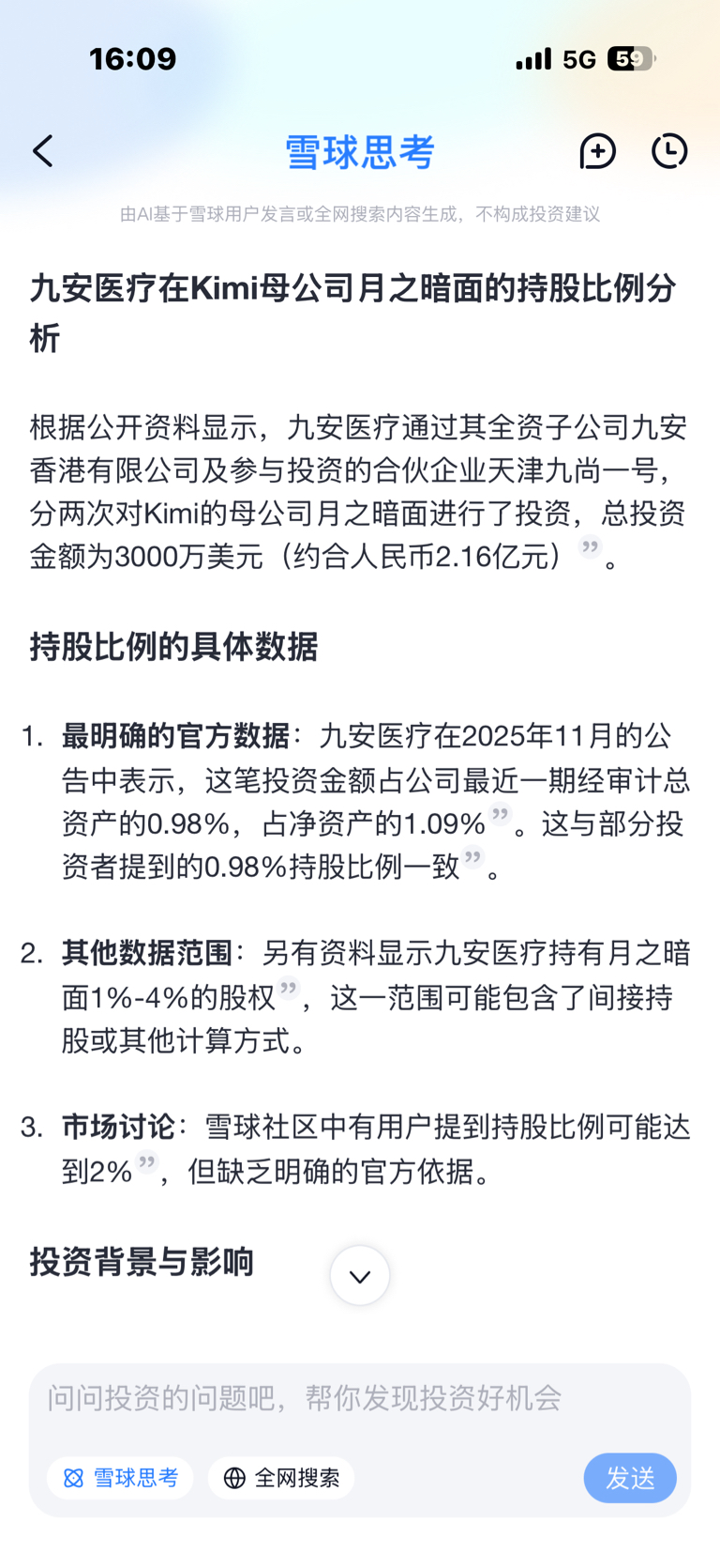 $九安医疗(SZ002432)$ 月之暗面Kimi股权投资