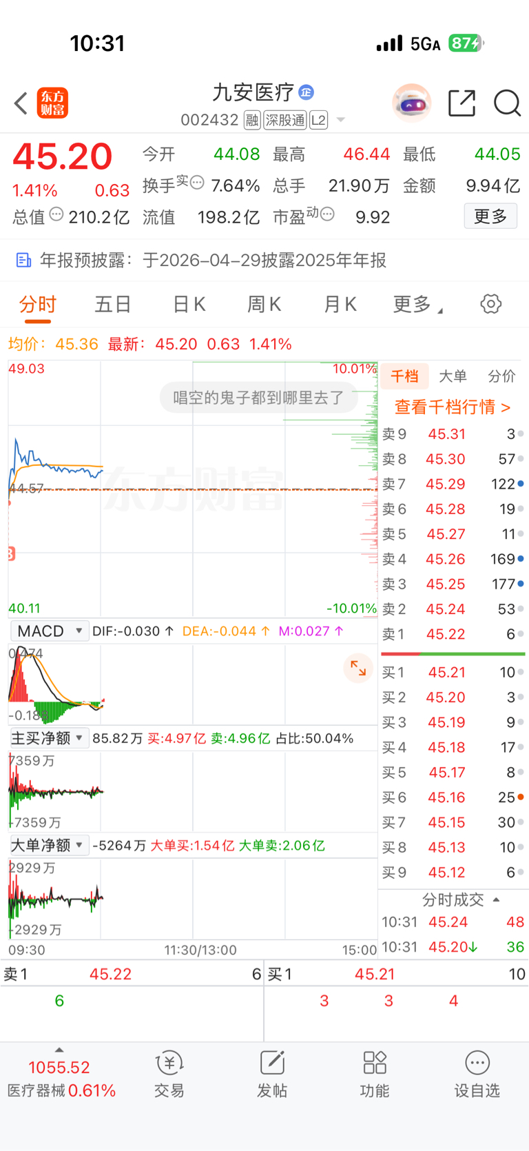 $九安医疗(SZ002432)$ 其实我也买了,早盘集合竞价买的。但看见那么多晒图的,我就想跑