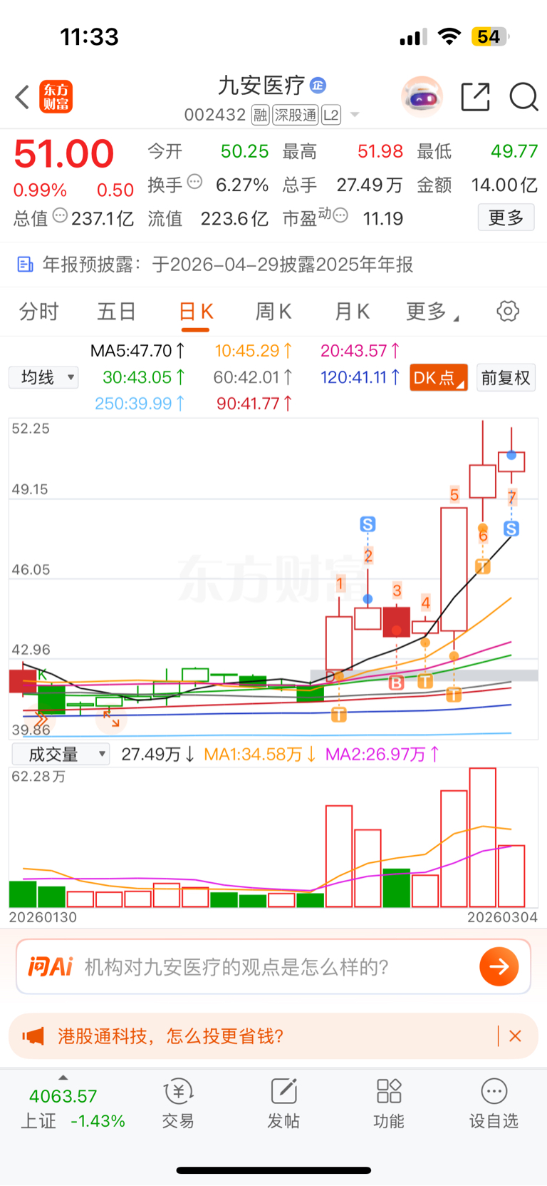 $九安医疗(SZ002432)$ 我有点看不懂这个老六了哈哈哈