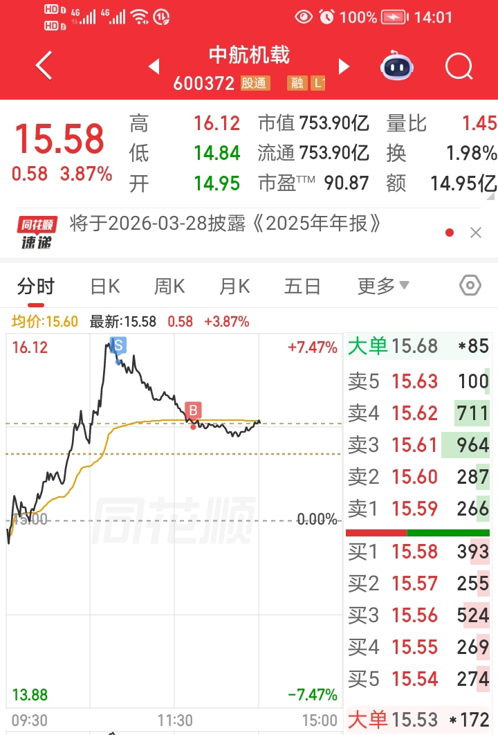 下周为两会行情,机载算一个,下午择机接回