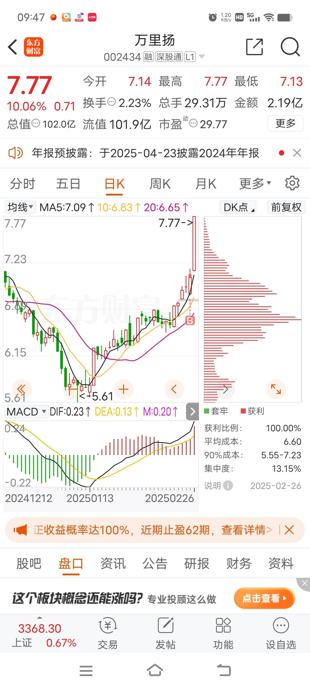 $万里扬(SZ002434)$ 昨天刚看上你这么好
