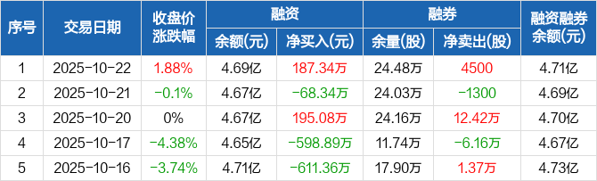 万里扬:融资净买入187.34万元,融资余额4.69亿元(10-22)