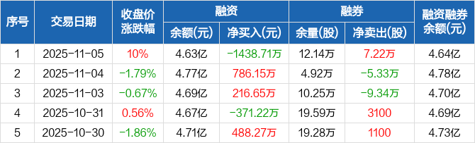 万里扬:融资净偿还1438.71万元,融资余额4.63亿元(11-05)