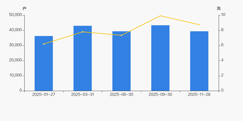 2025年1月27日至今,公司股东户数有所增长,区间涨幅为8.69%。2025年1月27日至2025年11月28日区间股价上涨41.27%。
